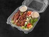 Steak, french fries, Monterey jack, cheddar & extra mozzarella cheese with ranch dressing.